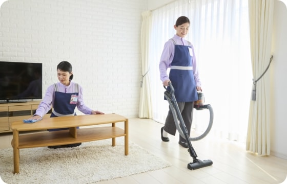 ダスキン本部が定める研修を受けたスタッフがお伺いいたします。ご希望のメニューによってはスタッフを固定することも可能です。