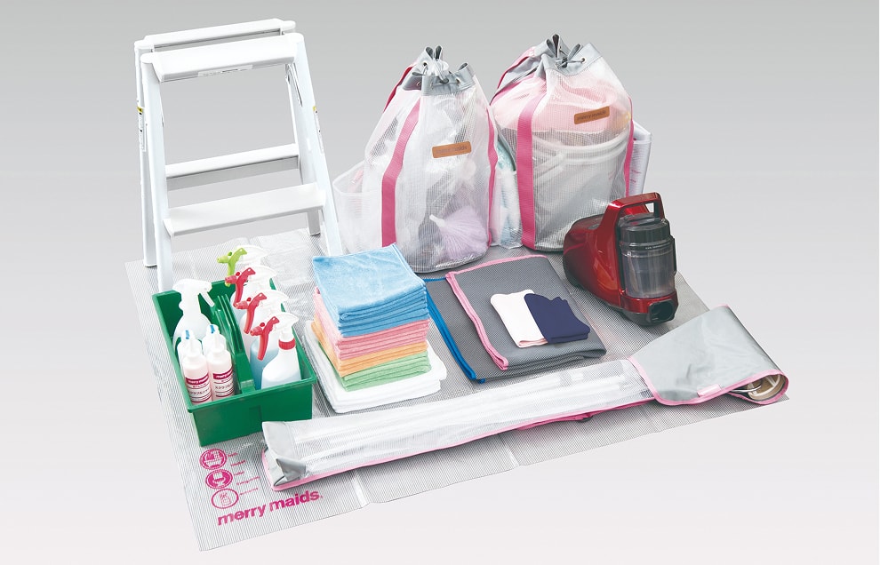 「お掃除おまかせサービス」は、キッチンやリビングなどお部屋ごとに専用の資器材を使って汚れに応じたお掃除を徹底して行うサービスです。